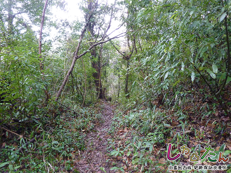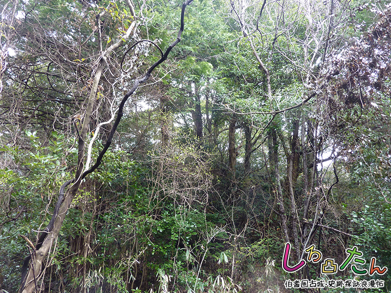 (略)天正八年の秋、吉川元春、当国へ押入羽衣石の城を攻滅すべしとして其身橋津の馬の山に陣を据え、息子治部少輔元長は国坂村の茶臼山に陣取って東三郡の在々を放火す。