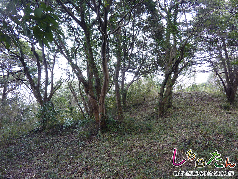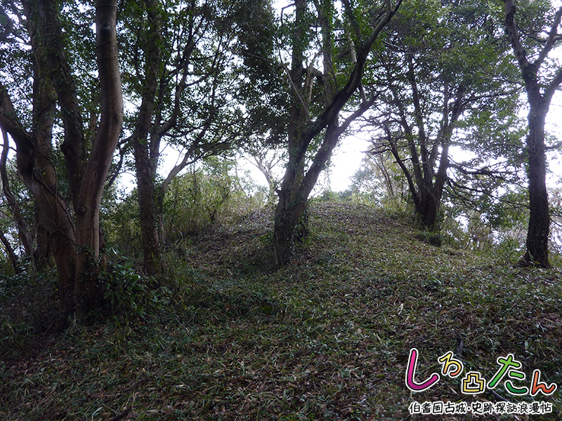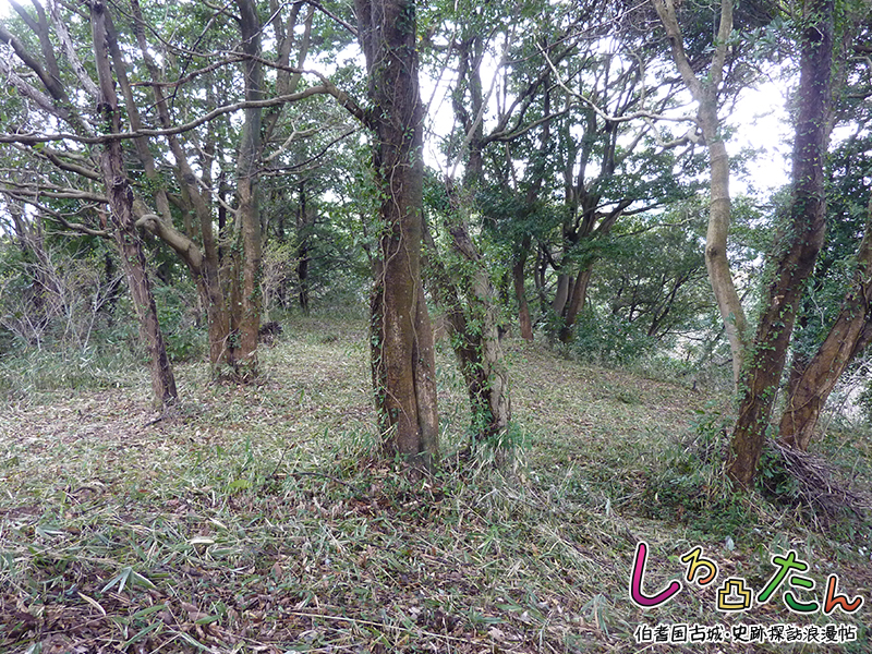 主郭は古墳の墳丘を転用しており、見張櫓として利用されたと推測されている。